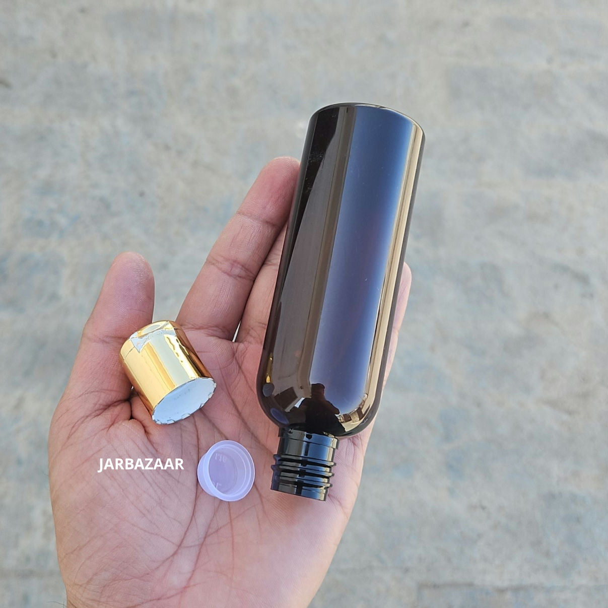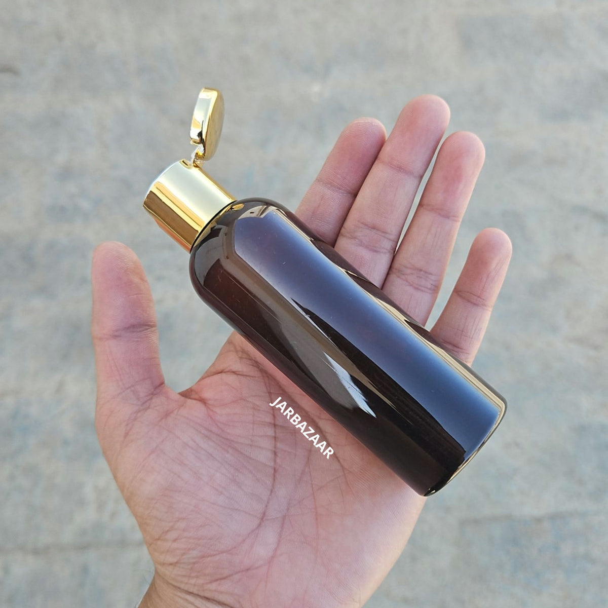 Upgrade your product packaging with our amber flip-top bottle with golden flip topcap – a premium choice for small-batch cosmetics, essential oils, serums, lotions, and herbal formulations. The amber PET bottle offers excellent UV protection, preserving the integrity of light-sensitive ingredients, while the sleek golden flip-top cap ensures controlled dispensing and a luxurious finish.