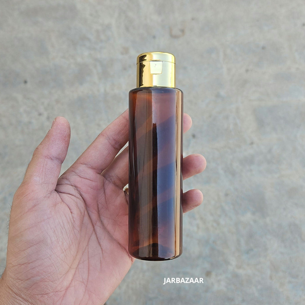 Upgrade your product packaging with our amber flip-top bottle with golden flip topcap – a premium choice for small-batch cosmetics, essential oils, serums, lotions, and herbal formulations. The amber PET bottle offers excellent UV protection, preserving the integrity of light-sensitive ingredients, while the sleek golden flip-top cap ensures controlled dispensing and a luxurious finish.