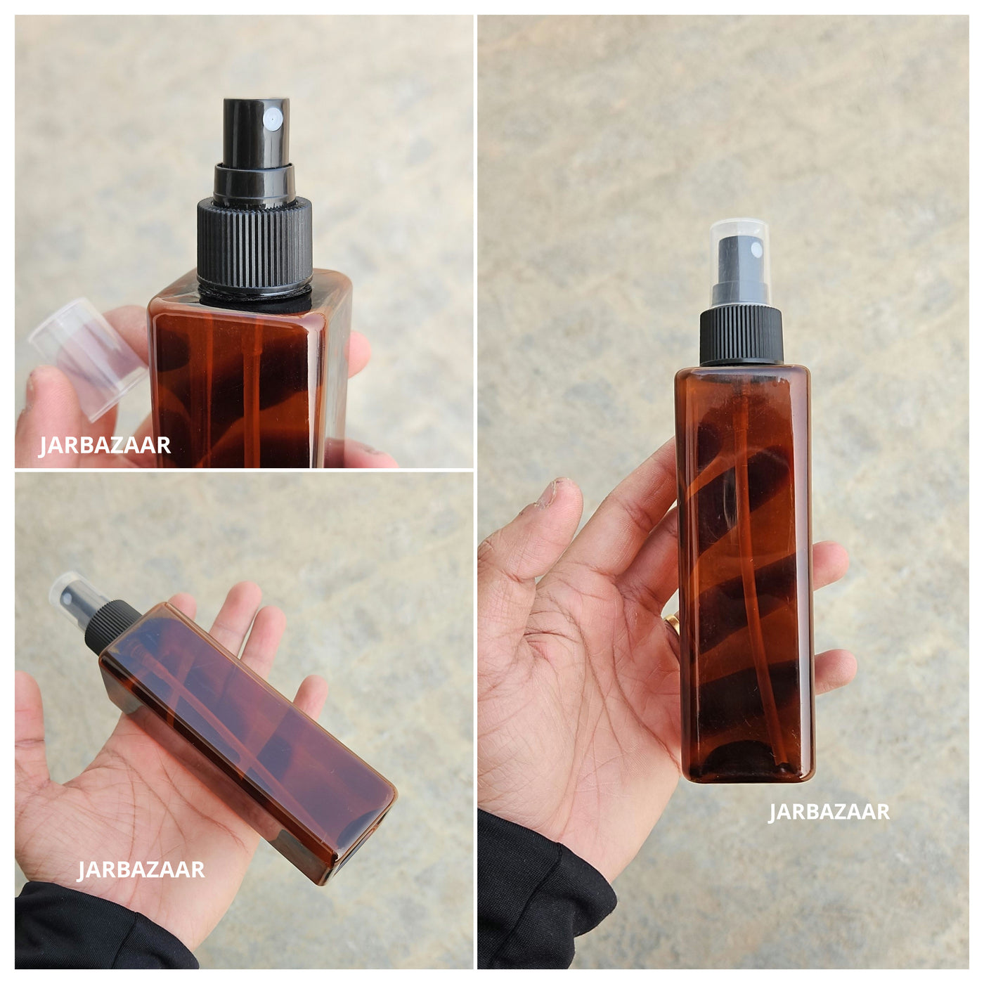 200 ML Square Amber Pet Spray Bottle - Black