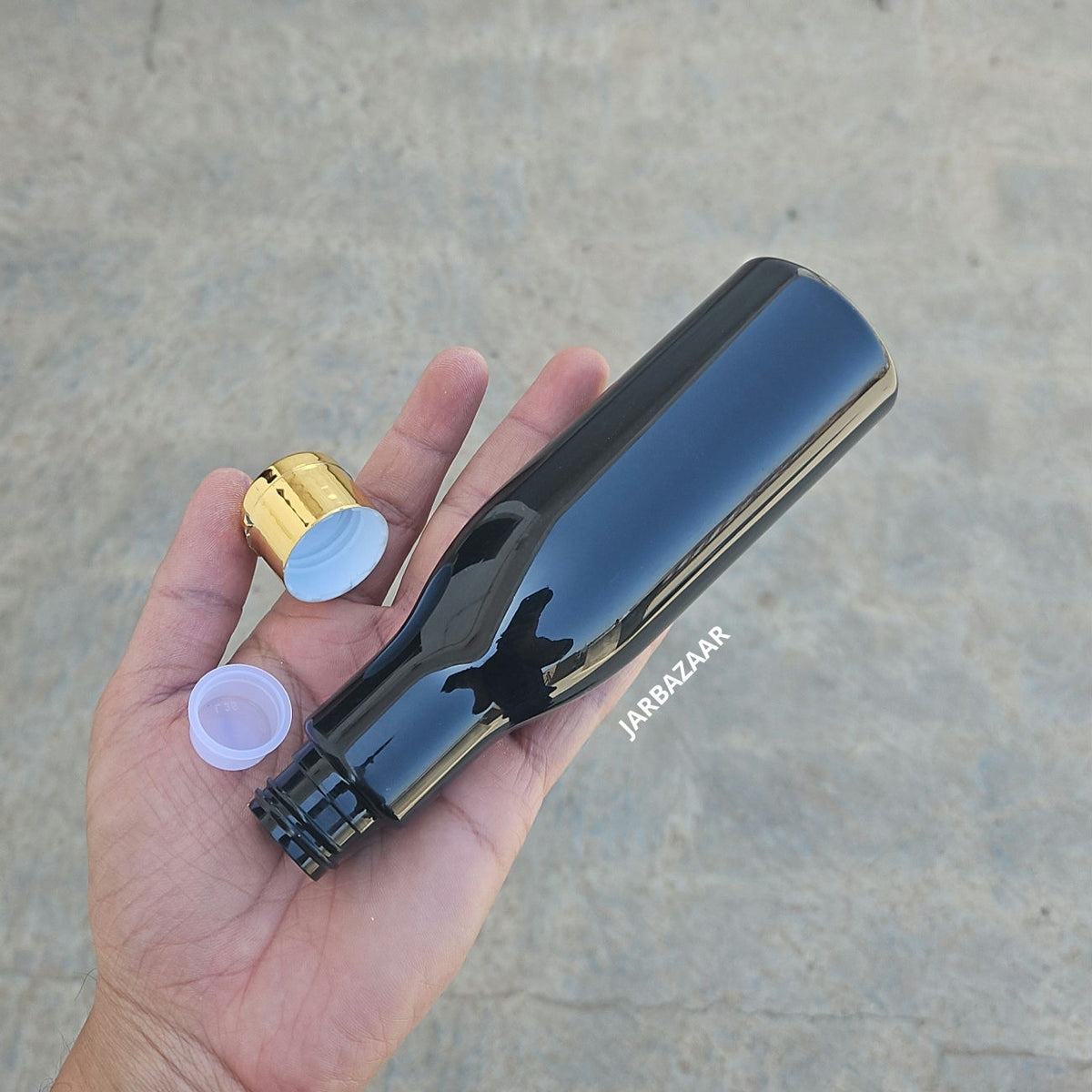 Upgrade your product packaging with our black flip-top bottle with golden flip topcap – a premium choice for cosmetics, essential oils, serums, lotions, and herbal formulations.