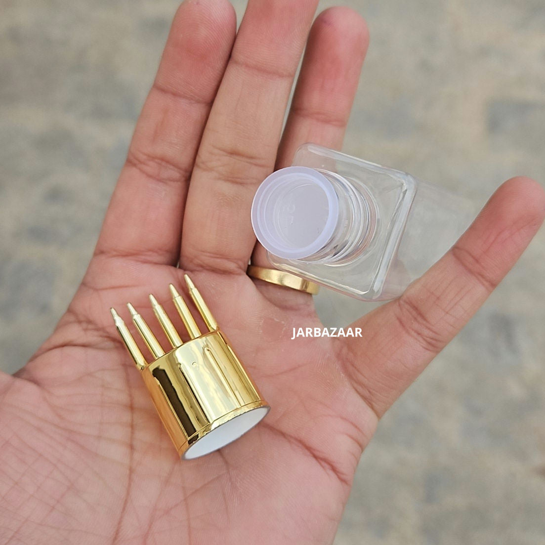 50 ML Square Transparent Pet Bottle (With Golden Comb Cap)