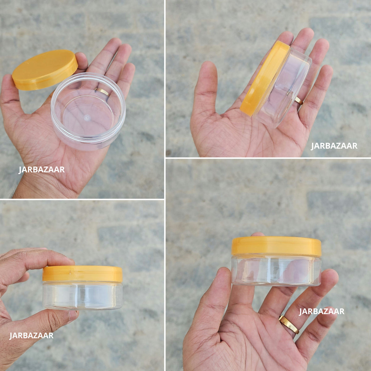 - Sleek Modern Design: Clear PET jar paired with plastic cap for a versatile and sophisticated look.