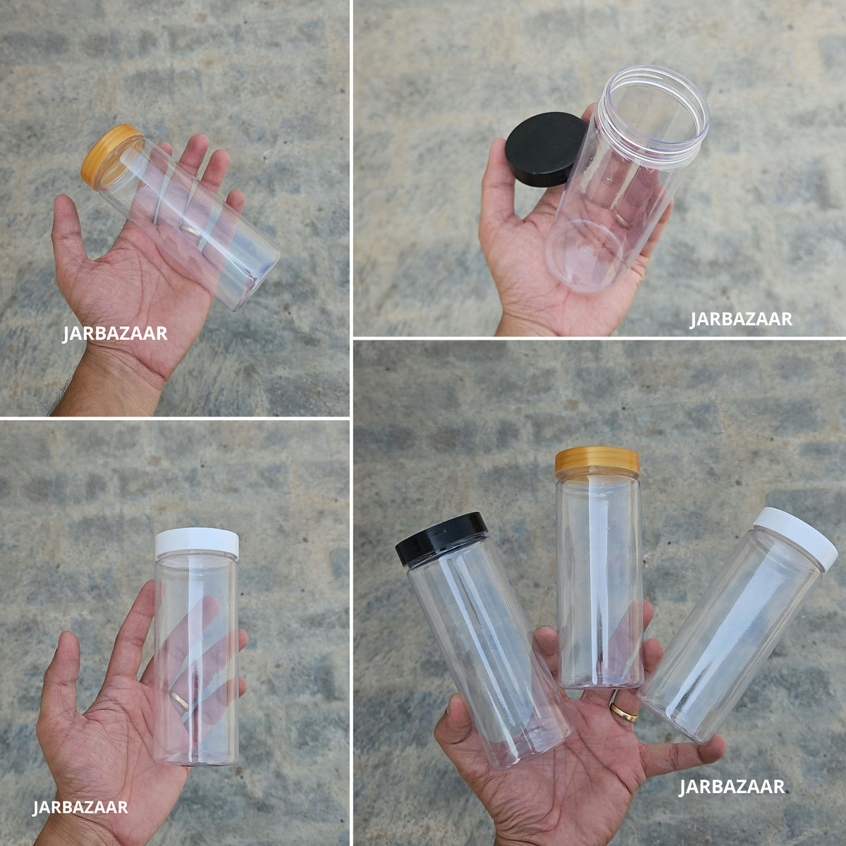 300 ML Long Pet Jar (With Plastic Caps)