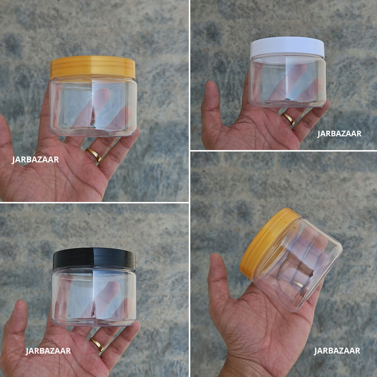 - Sleek Modern Design: Clear PET jar paired with plastic cap for a versatile and sophisticated look.