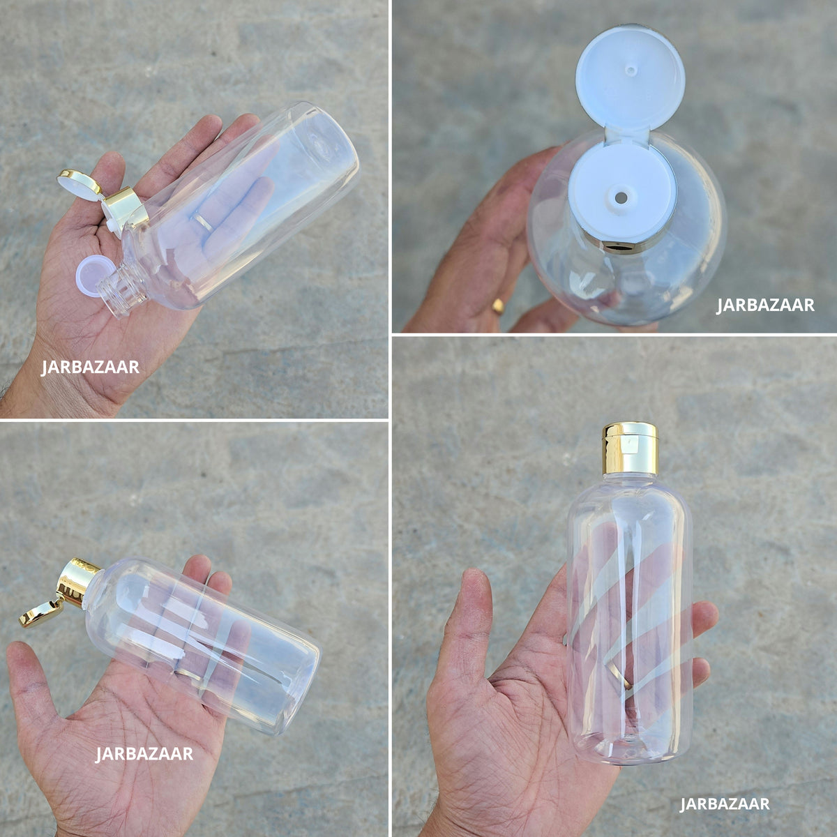 Add elegance and functionality to your product packaging with our 300 ml boston-shaped transparent PET bottle with golden flip-top cap. Designed for brands looking to stand out, this stylish bottle features a clear body that beautifully showcases your product’s colour and texture, making it ideal for cosmetics, haircare, and personal care items. The bell-shaped design not only enhances shelf appeal but also provides a comfortable grip for end users.