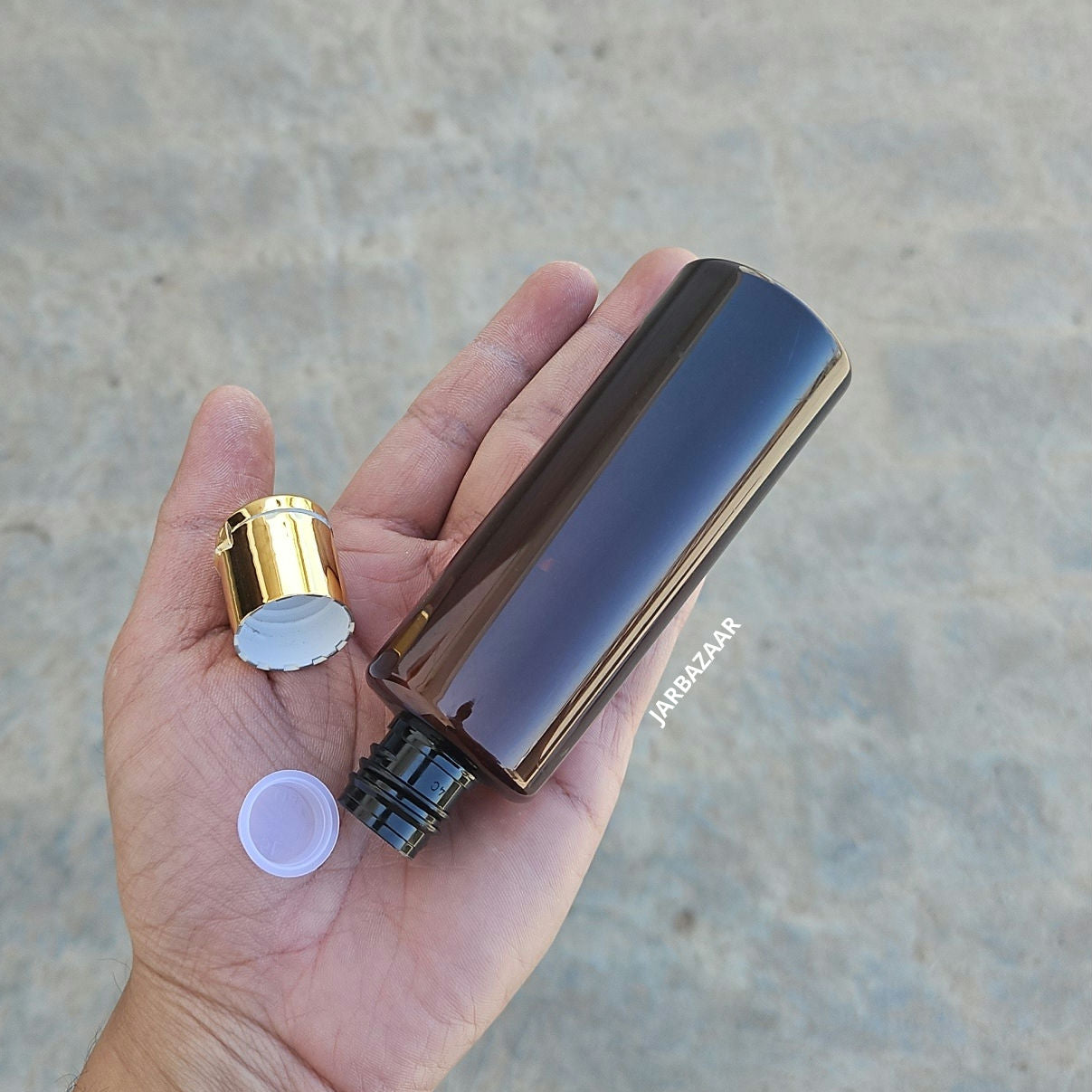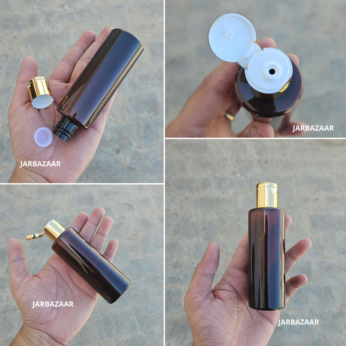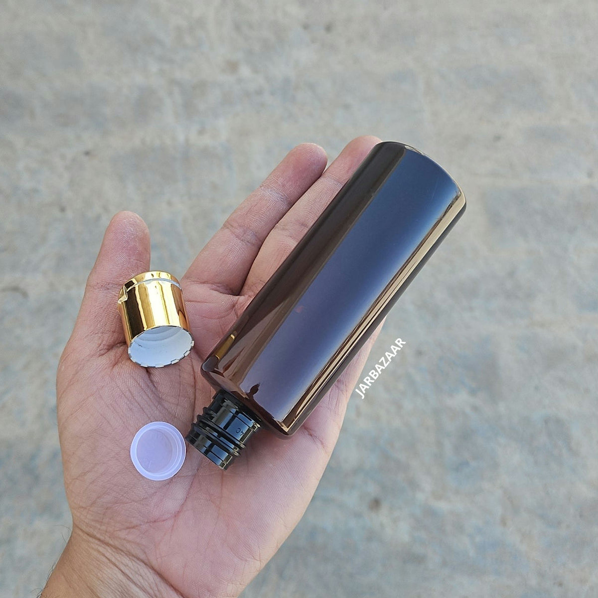 Upgrade your product packaging with our amber flip-top bottle with golden flip topcap – a premium choice for small-batch cosmetics, essential oils, serums, lotions, and herbal formulations. The amber PET bottle offers excellent UV protection, preserving the integrity of light-sensitive ingredients, while the sleek golden flip-top cap ensures controlled dispensing and a luxurious finish.