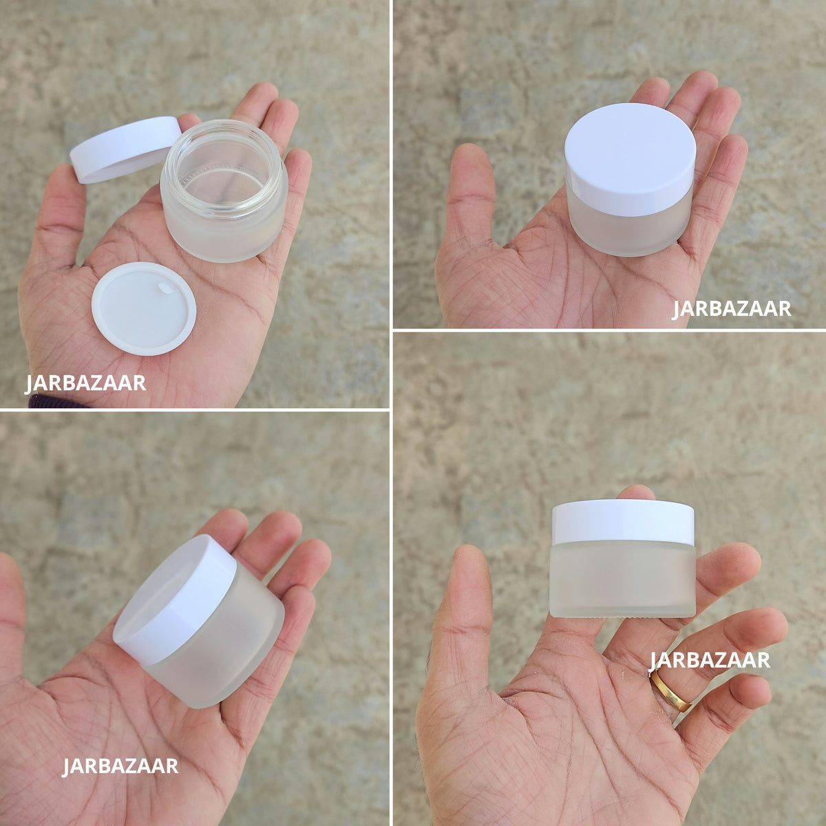 This 30 gram clear frosted glass jar is a premium packaging solution designed for luxury cosmetic, skincare, personal care, and ayurvedic products. Made from high-quality thick frosted glass, the jar features a soft matte finish that enhances shelf appeal while subtly showcasing the product inside.